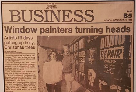 Back in 1991 we made the cover of the business section of the Phoenix Gazette. We hope to make you a part of our history of helping Arizona businesses reach new customers with eye popping hand painted windows, wall signs and A-Frame signs!